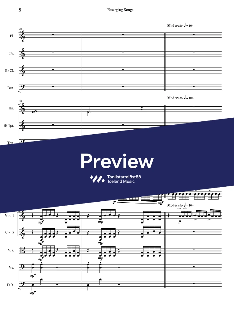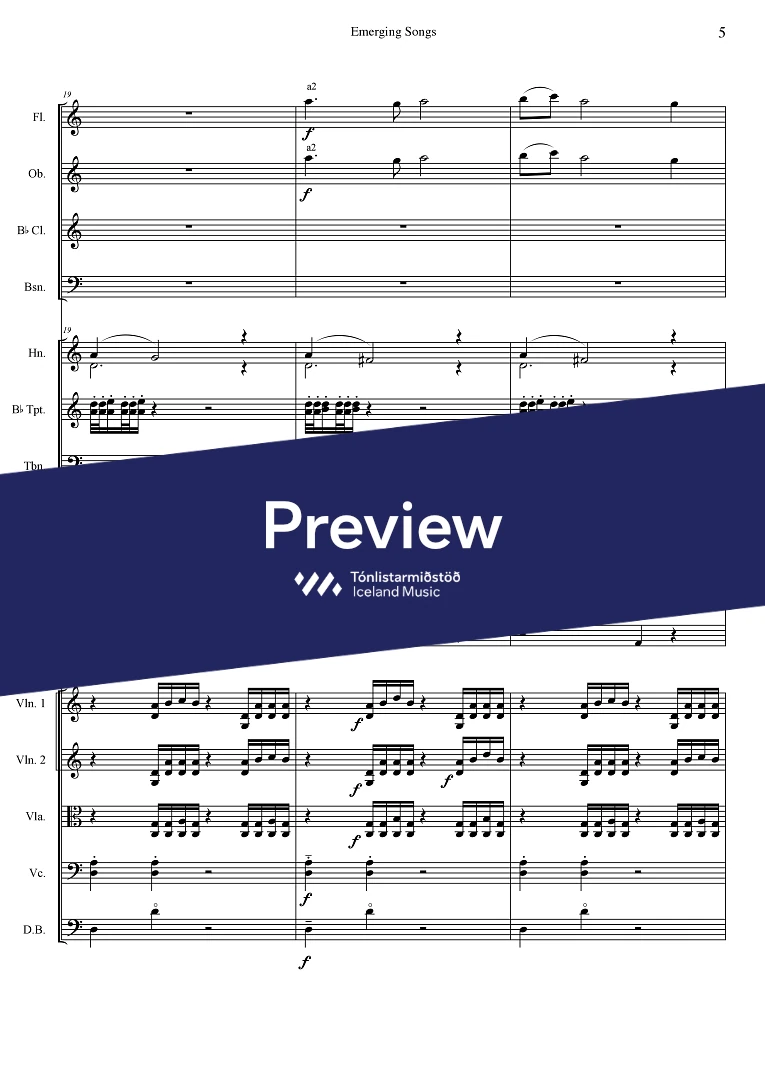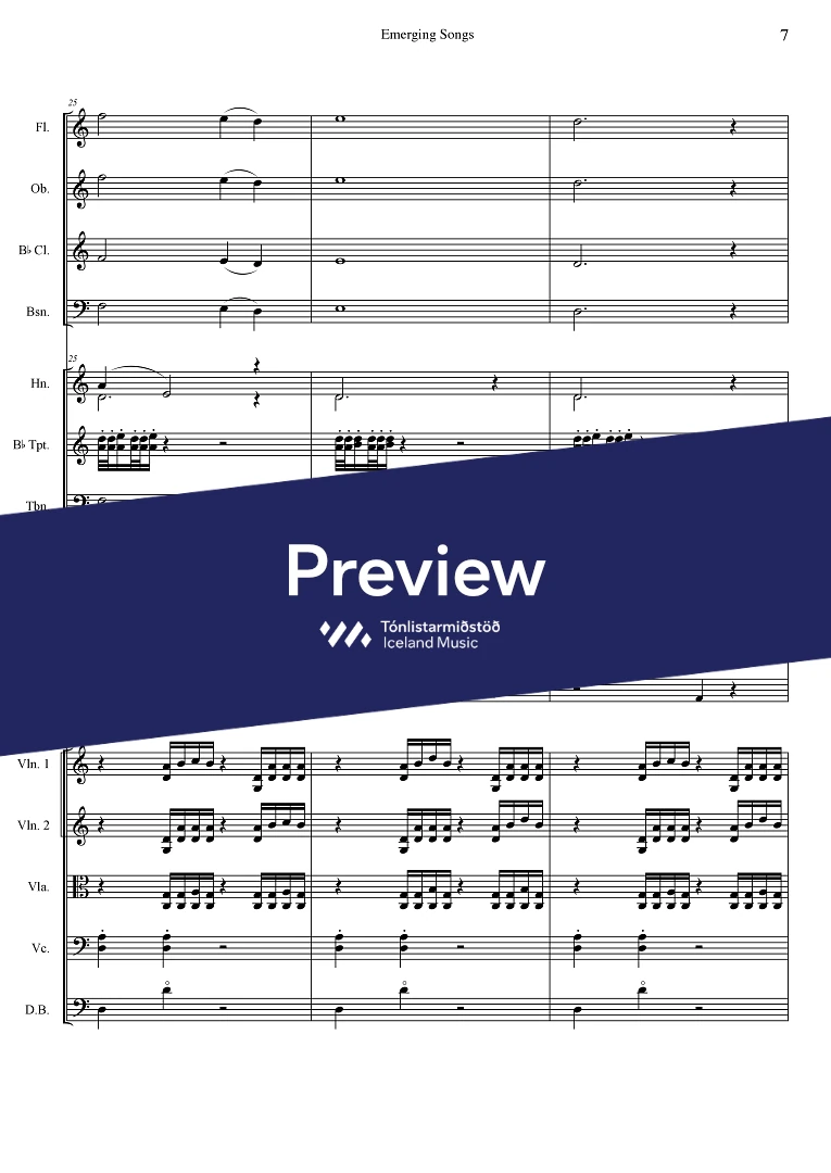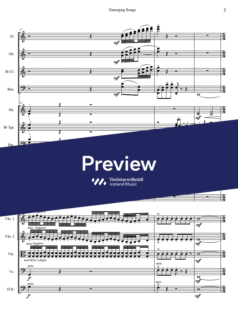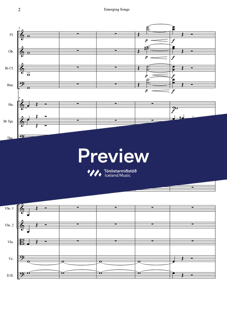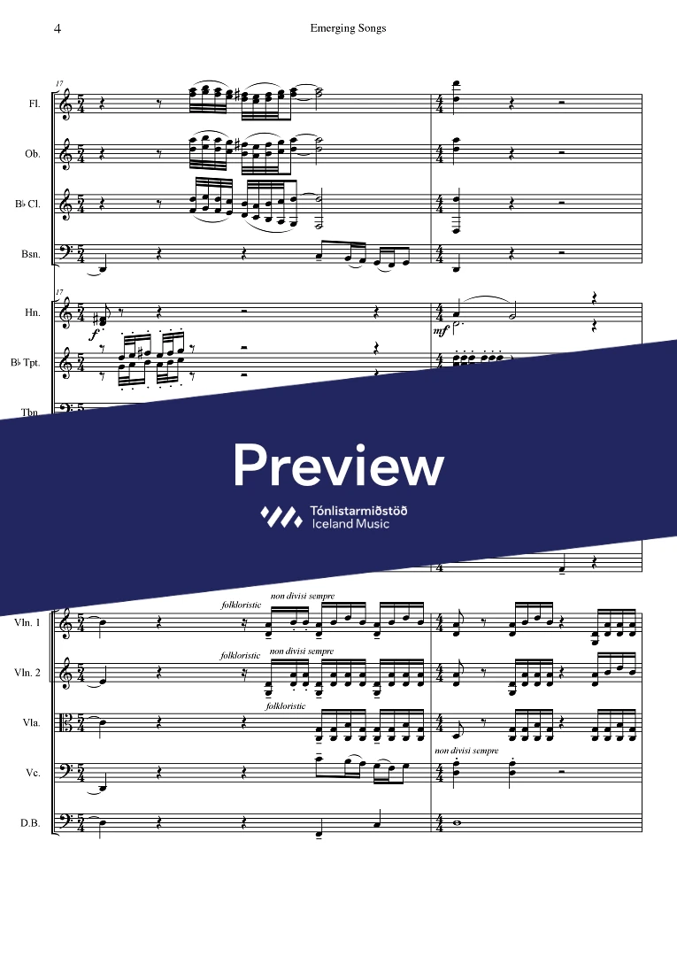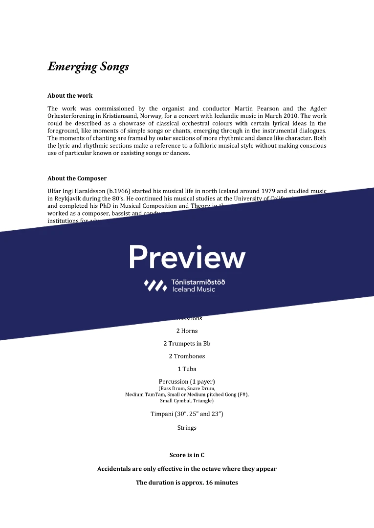 Instrumentation 2fl. 2ob. 2cl. 2bsn. 2hrn. 2tpt. 2tbn. tba. tmp. perc. str.