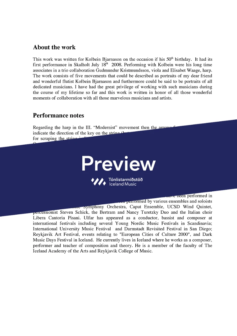2fl. 2ob. 2cl. 2bsn. 2hrn. 2tpt. 2tbn. tba. tmp. perc. str.