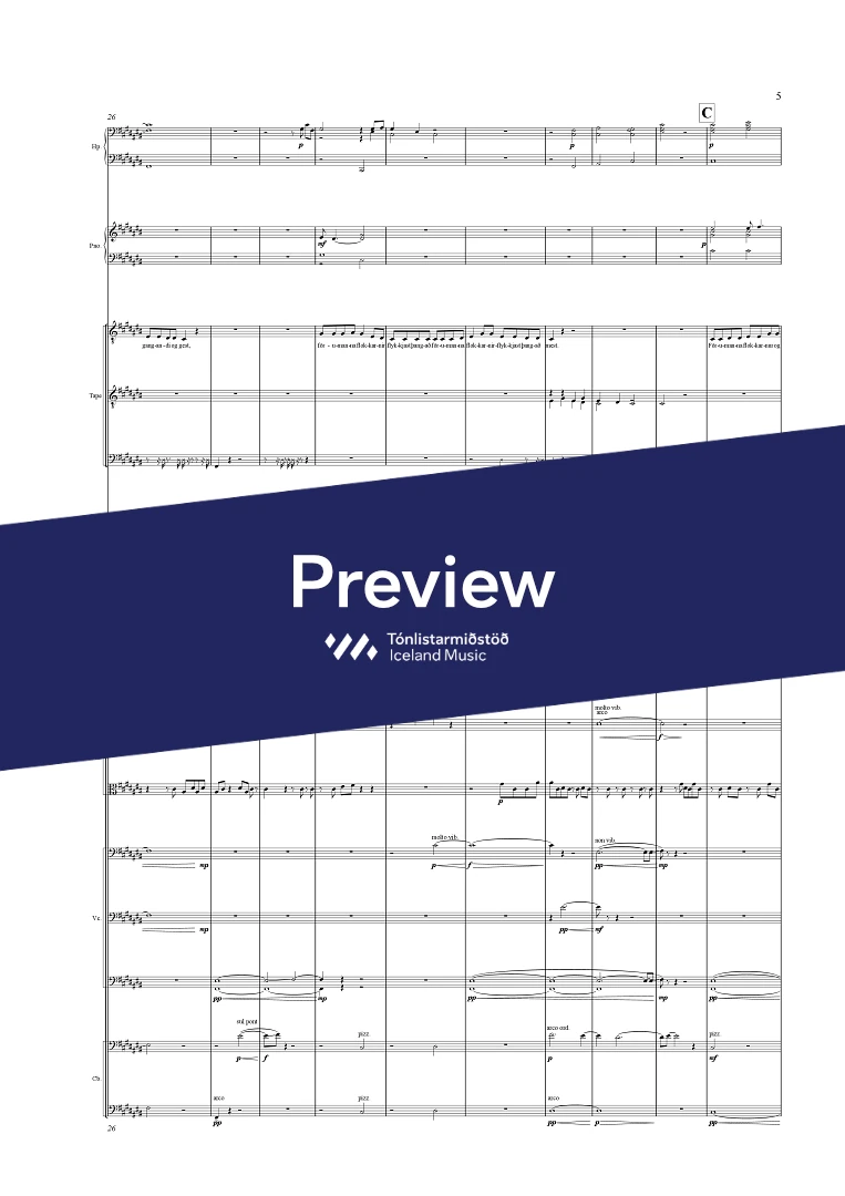 1(picc./a.fl.)1(c.ang)1(bcl.)1(cbn.) - 1,1,2,0 - perc. - hp. - pno/cel. - tape - str.