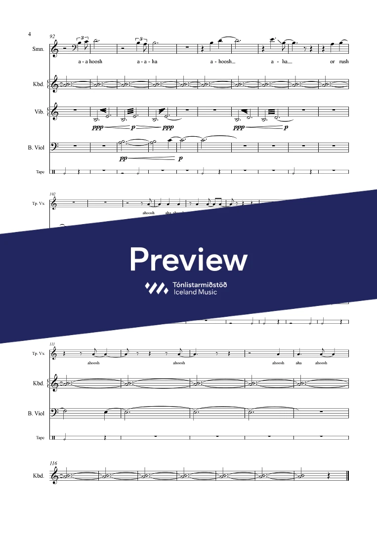 InstrumentationPercussion, Piano, Electronic Keyboard, Electronics, Female voices, Male voices, Other Strings