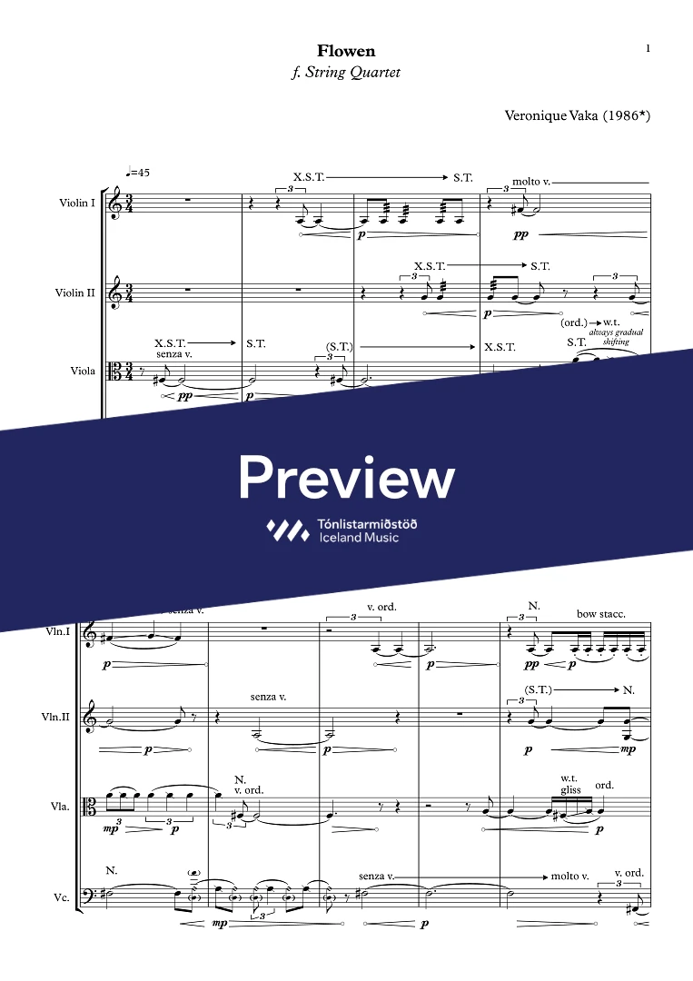Composed for String Quartet "Siggi" and first performed by them, 8th March in "Norðurljós" Concert Hall, Reykjavík