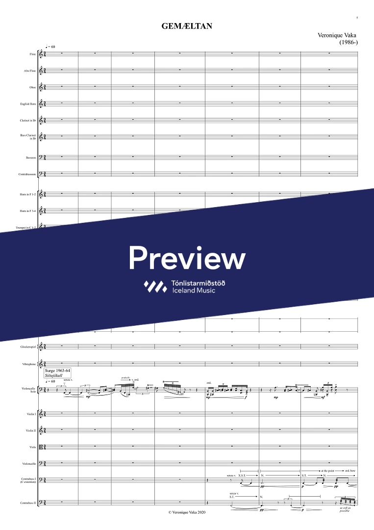 Instrumentation 2 (A.fl.).2 (C.A.).2 (B.cl.).2 (Dbsn). - 4.2.2 (Btbn.).1. - timp. - solo vc. - 2 perc. - strings
