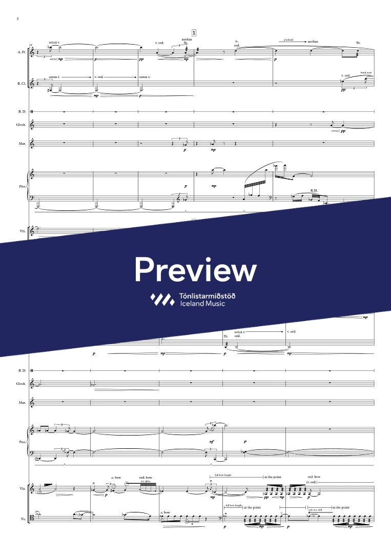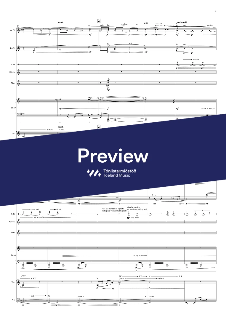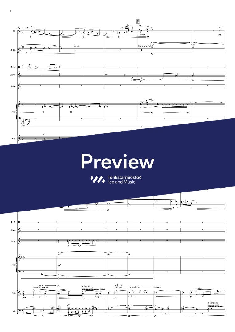 3(afl.),3(c-ang.)3(Bcl.),3(Cfag) - 4.3.3.1 - tmp. - perc.(3) - hp. - pno. - str.